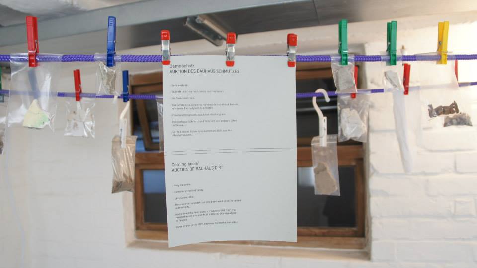- an installation of ‘Genuine Bauhaus dirt for sale’, considering the value of the products of cleaning, and how dirt from Bauhaus sites may add or decrease value.
